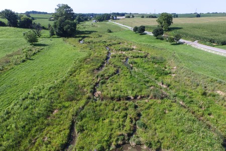 Dams and the mills they powered affected natural valley bottom hydrology in every corner of the Mid-Atlantic, including at Brubaker Run, the stream that meanders through the Lime Spring Square site. Prior to the restoration, Brubaker Run was flanked on the left and right by tall, near-vertical banks of fine-grained sediment visibly eroding into the stream. By the time the restoration was complete, the engineers had restored 4,750 linear feet of stream by removing 38,500 tons of legacy sediment that would have ultimately traveled downstream into the Chesapeake Bay. After engineers removed the sediment, 8.4 acres of wetlands that had persisted in the valley bottom for thousands of years reemerged.